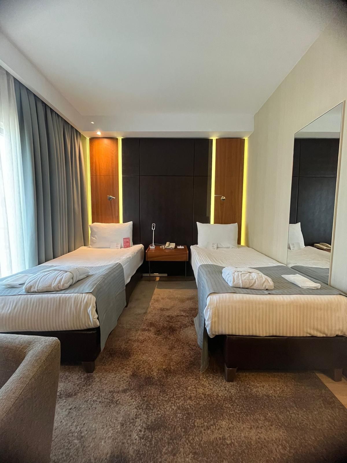 Dubleks Suit odamız, kahverengi tonlarda dekore edilmiş olup; içerisinde gardrop, özel kasa, LCD TV, Mini Bar, Kahve ve Çay Makinesi içeren bir oturma alanı bulunmaktadır. Banyoda, odaya dahil banyo malzemeleri; duş ve tuvalet mevcuttur. Özel seri yataklarımız, ergonomi ve ekstra konfor sağlaması için Hyper Soft dolgu malzemesi içeren bileşenlerden üretilmiştir. Bu sayede konuklarımız daha konforlu istiharat sağlamaktadırlar. Fresh Air to Go ile, odanın içerisindeki havayı temizlemek, partikül ve alerjenlerden arındırmak için SynAirG teknolojisi içeren klima sistemi ile iklimlendirme sağlanmaktadır.